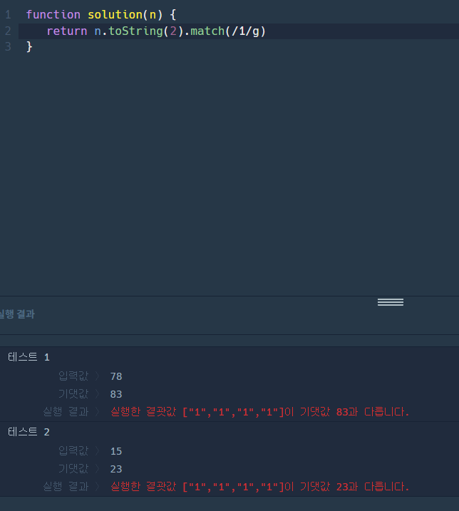 근데 match는 찾아서 배열으로 반환하는듯? 그래서 length를 이용해서 길이가 같은지 확인하면 되는 것 같다.