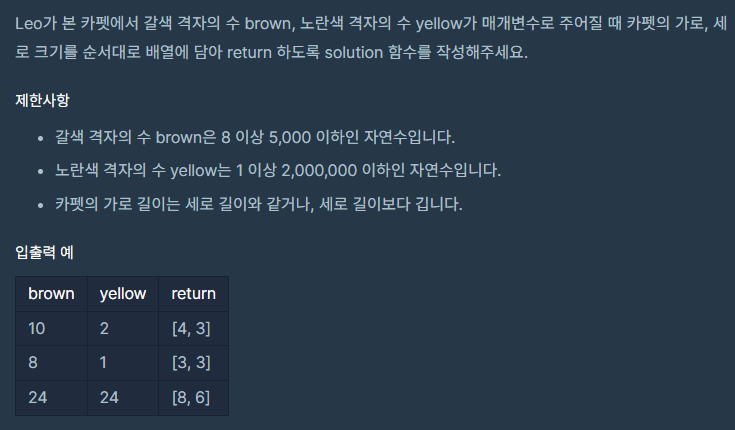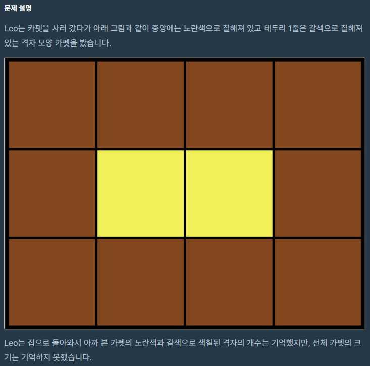 if i * j == yellow and (i+2) * (j+2) == brown + yellow: