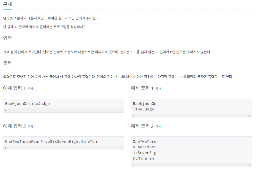 문자열이 10으로 나뉘어 떨어지지 않아도 알아서 마지막에 10개 미만의 글자를 출력해 준다.