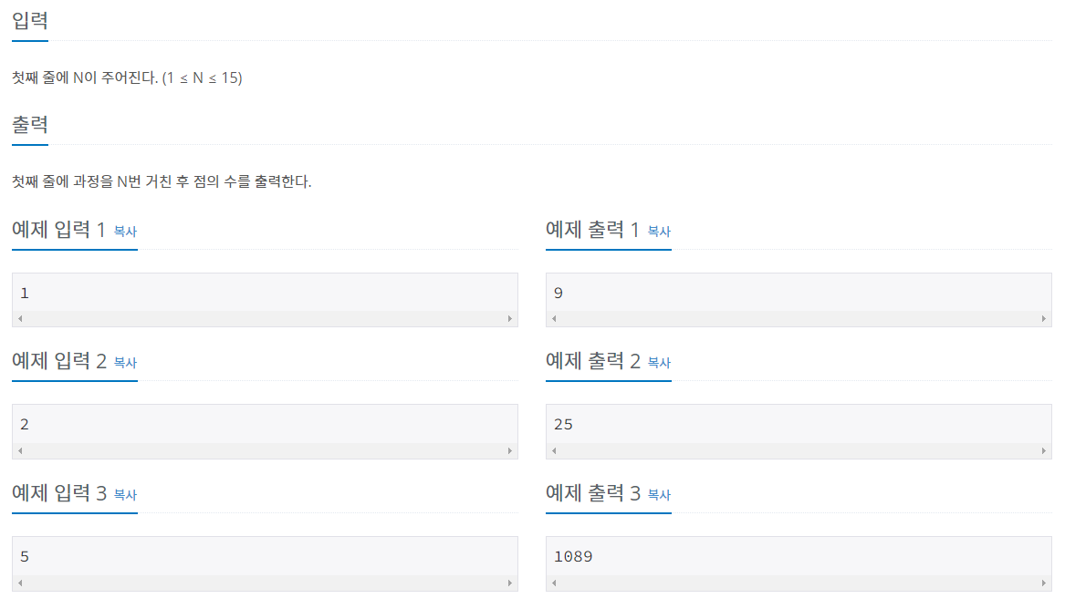N 번째의 한 변의 점의 개수는 N-1 번째의 점의 개수의 2배 - 1이다.