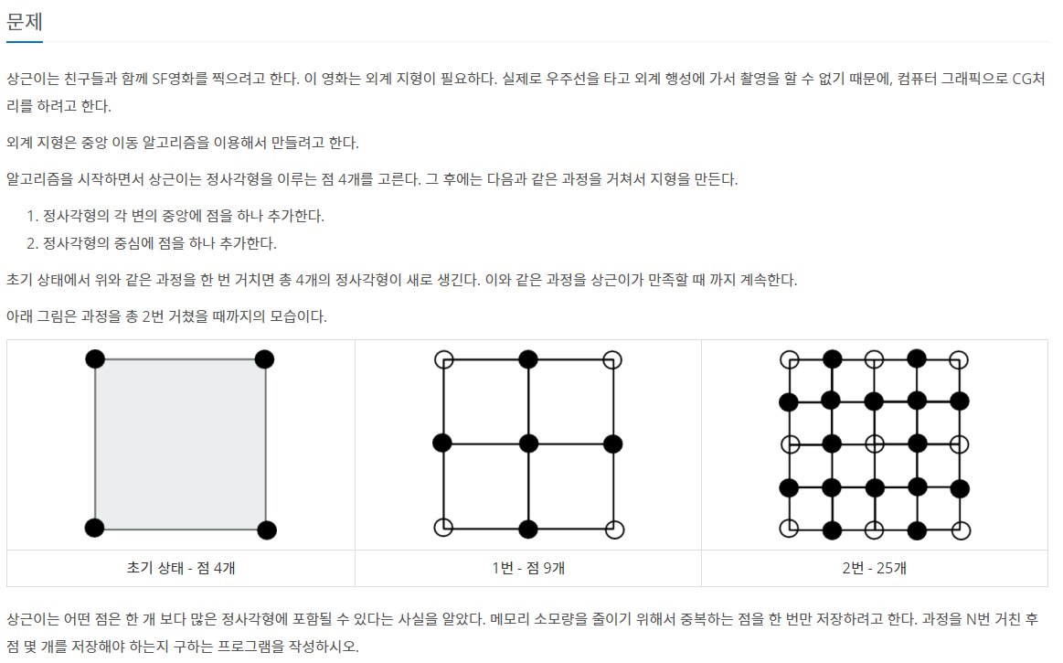 전체 점의 개수는 한 변의 점의 개수의 제곱이다.