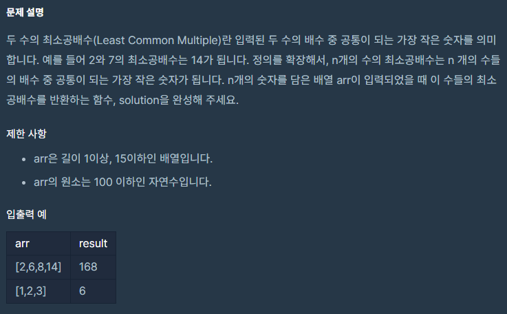 [2,6,8,14]이면, 2와6의 최소공배수를 구하면 6이 나오고