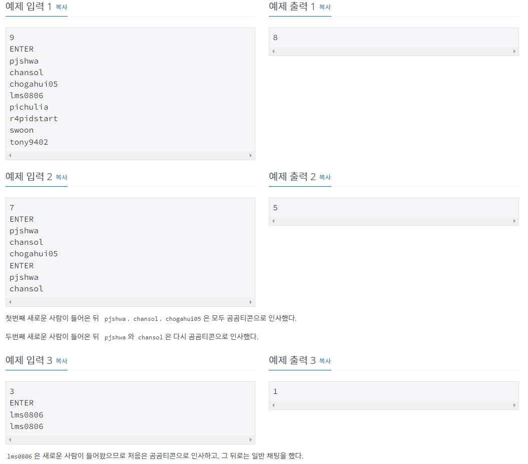 새롭게 ENTER가 나올 경우 초기화를 시켜주어야 한다.