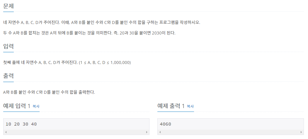 a+b 와 c+d의 값을 각각 정수로 변환시킨 후 다시 더해주었다.