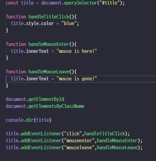위의 코드는 title을 "click"하면 handleTitleClick 함수가 실행된다.