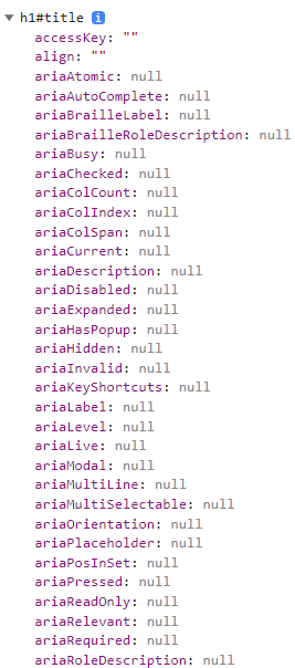 document.title, document.head, document.body 는 존재하지만, h1, div는 따로 쿼리셀렉터를 이용하여 불러와야 한다.