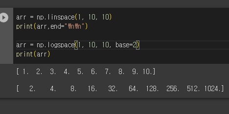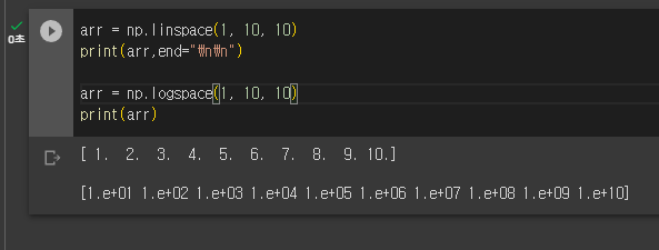 np.logspace()는 linspace와 비슷한 로그 값 스케일의 메소드이다.