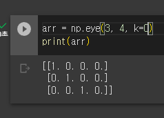 3행 4열의 0번째 인덱스에서부터 시작되는 대각선이 1인 배열이 반환되었다.