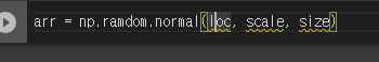np.random.normal(평균값, 표준편차, 표출할 표본의 개수)