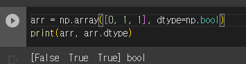 arr뒤에 dtype을 붙이고 출력하면 어떤 데이터타입인지 확인할 수 있다.