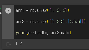 -> 열이 3개인 1차원 / 행이 2개이고 열이 3개인 2차원