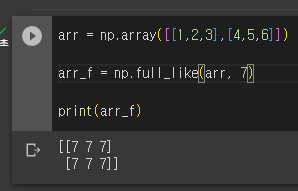 np.full_like는 기존에 있는 배열의 요소들을 지정한 원소로 바꿔준다.