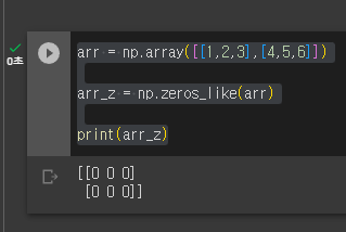 np.zeros_like는 기존에 있는 배열의 요소들을 모두 0으로 바꿔준다.