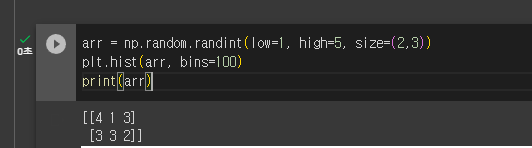 5을 입력해서 5로 이루어진 2행 3열의 배열이 반환되었다.