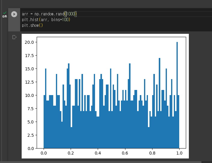 0에서 1사이의 값을 균등한 비율로 표본을 추출해 줌
