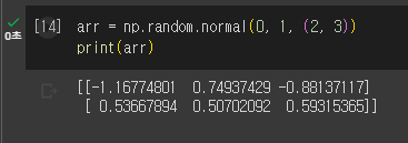 size 부분을 (행,열) 형태로 입력하면 난수로 이루어진 행렬 출력