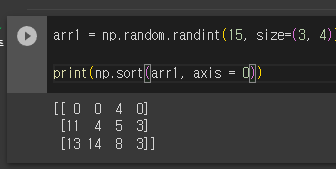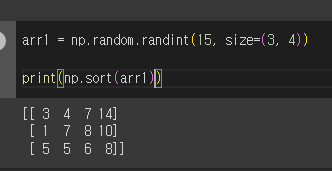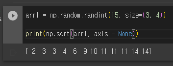 axis = None 을 사용하면 2차원 배열을 1차원으로 바꾼 후 정렬