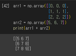 의 형태로 연산을 해 준다. (각 행에 모두 5,6,7을 더한다)