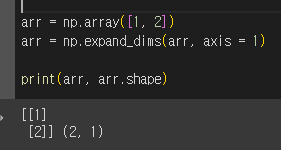 expand_dims()를 이용하여 axis = 1(열 기준)으로 차원을 추가해 주었다.