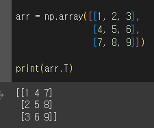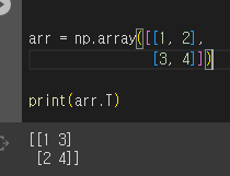 전치행렬은 어떤 두 요소가 행=열, 열=행일 때 서로의 값의 위치를 바꿔준다.