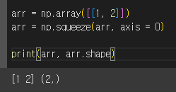 squeeze()를 이용하여 한차원이 제거되어 2차원에서 1차원으로 변경된 것을 볼 수 있다.