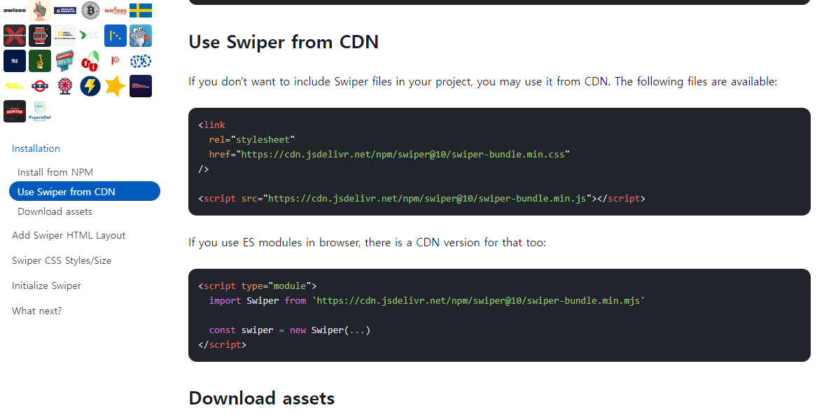 <link rel="stylesheet" href="https://cdn.jsdelivr.net/npm/swiper@10/swiper-bundle.min.css"/>