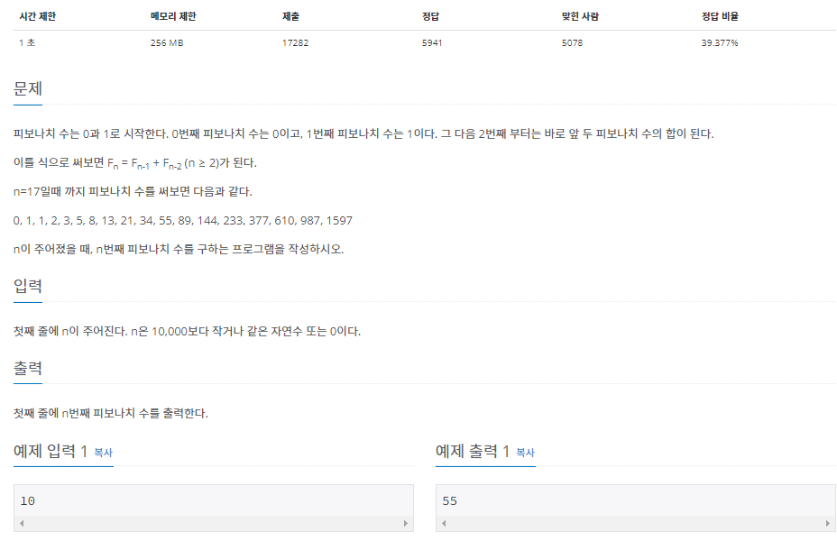 피보나치수열은 0과 1로 시작할 때, 이후의 숫자는 이전의 두 숫자를 더한 값으로 이루어지는 수열을 말한다.
