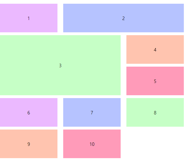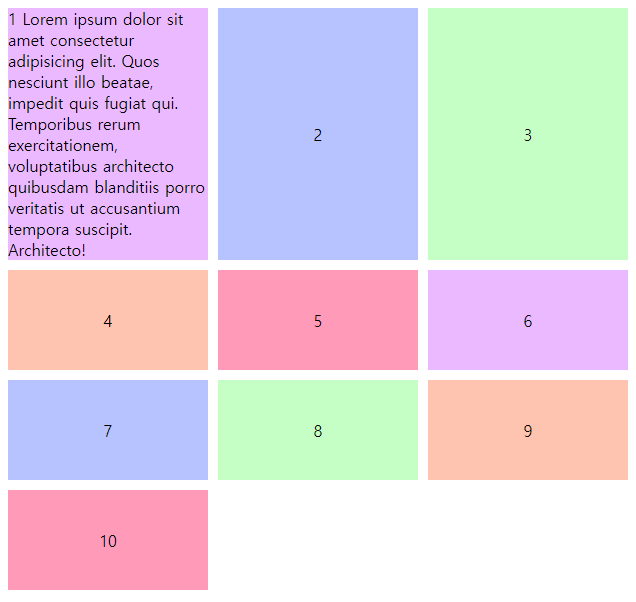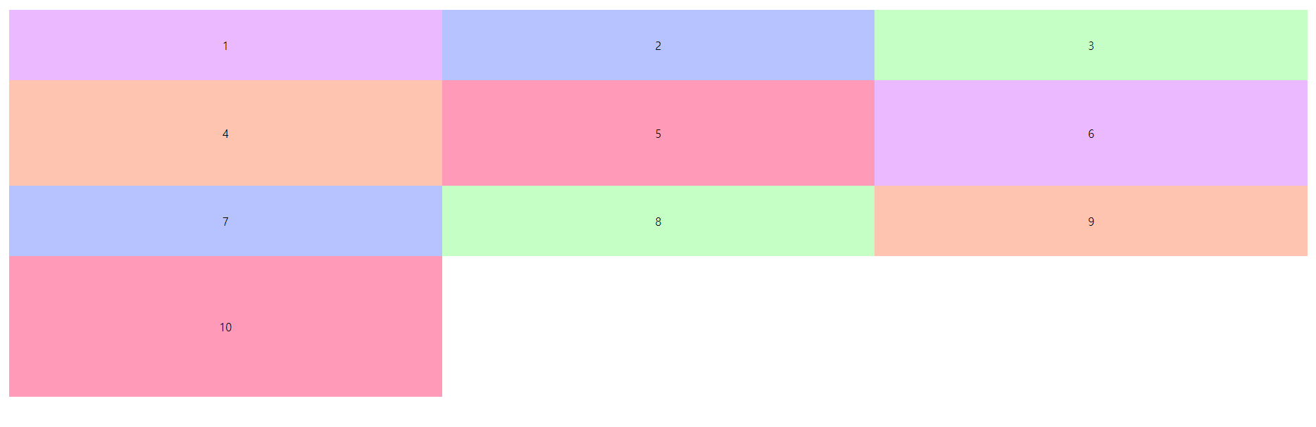 또 grid-gap을 이용하여 그리드 셀을 서로 10px만큼 벌어지게 해 주었다.