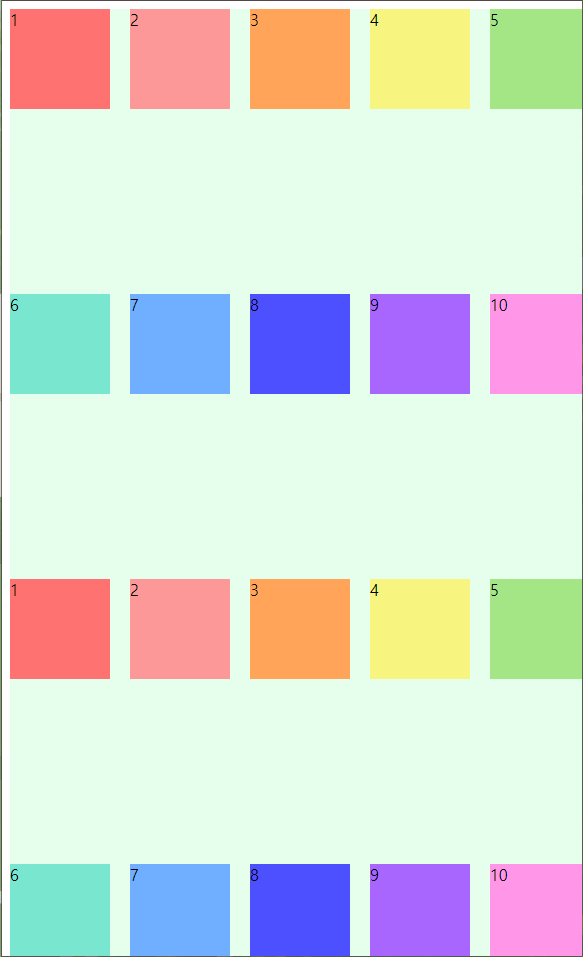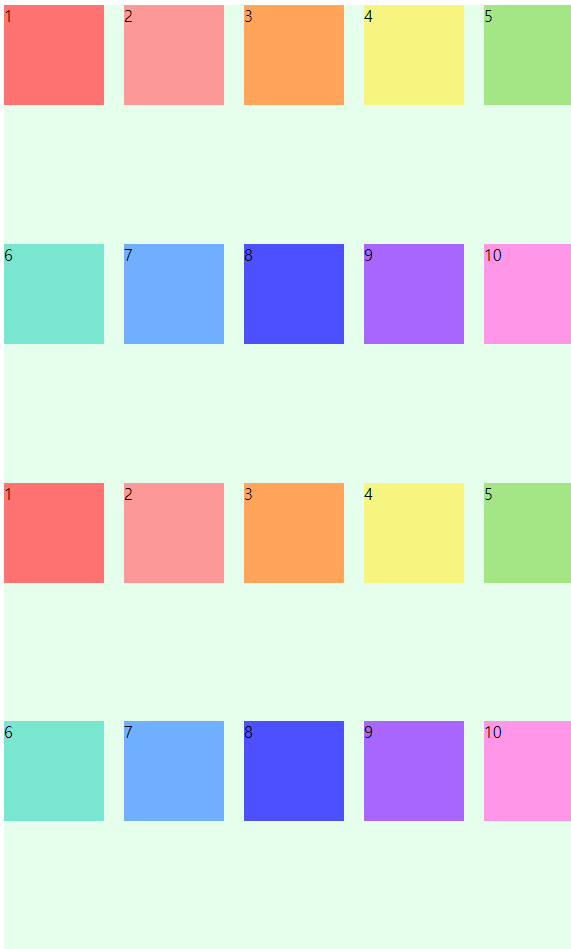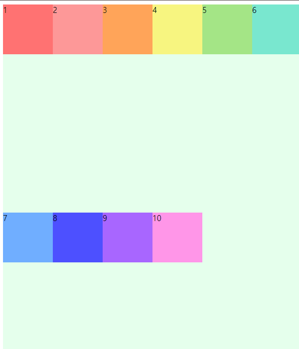 flex-wrap 속성은 wrap과 nowrap 속성이 있는데, 위와 같이 wrap으로 지정해 주면 아이템들의 요소가 많아 컨테이너를 꽉 차게 되면 자동으로 다음 줄로 넘어가게 된다. (wrap에도 wrap-reverse와 같은 속성이 있다)