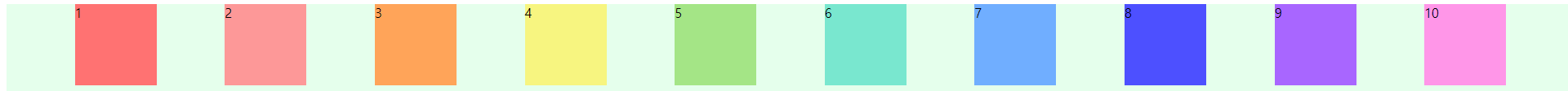 컨테이너에 display: flex를 지정하면 블럭요소였던 <p>가 가로로 한 줄로 정리된다.