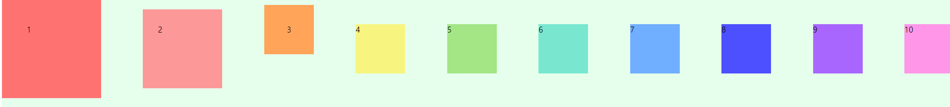 nowrap상태일 때 flex-shrink를 0으로 지정해 주면 지정해 준 사이즈로 유지시켜 준다.