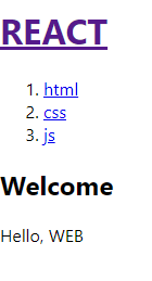 안에 있는 내용이 props.title = REACT로 해석되어 나타나는 것이다.