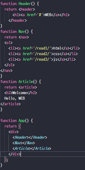 리액트에서는 이러한 사용자 정의 태그를 "컴포넌트"라고 부른다.