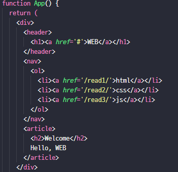 return 값으로 아까 만들었던 header태그의 내용을 그대로 복사/붙여넣기한다.