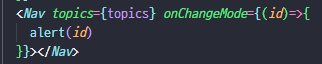 아까와 같이 onChangeMode{}를 적고, {} 안에 (id) => alert(id)를 적어 놓는다.