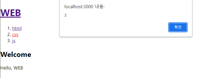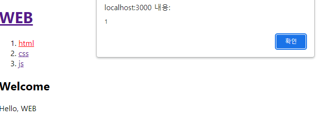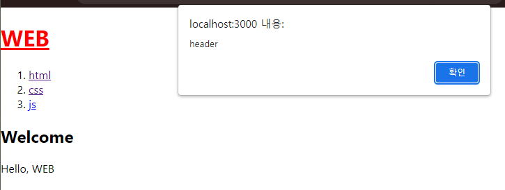 즉, 클릭 시 경고창으로 haeder가 뜨게 할 것이다.