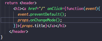 props.onChangeMode()를 Header함수의 onClick 이벤트 함수 안에 추가해 준다.