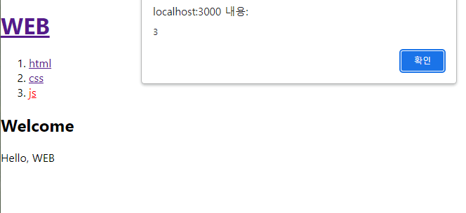 nav를 눌렀을 때, id값(이전에 작성했던 1,2,3값들)을 경고창으로 출력되게 해보자