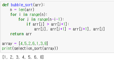 현재 배열 요소와 그 다음 배열 요소를 비교하여 조건에 맞으면 교환하는 정렬