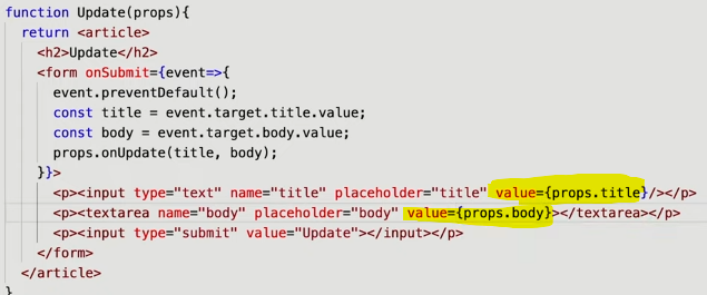 그렇기 때문에 폼에서 내용을 수정하려고 한다 해도 props의 값은 여전히 html과 html is... 이기 때문에 바꿀 수 없는 것이다.
