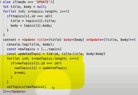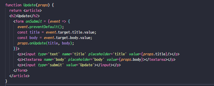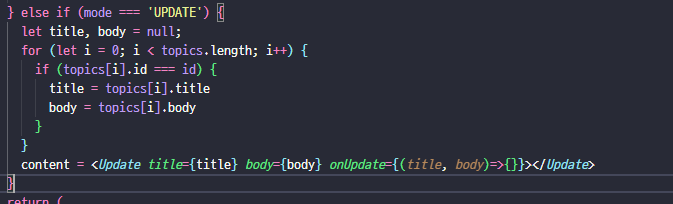 <Update> 안에다 onUpdate={(title, body) => {}} 작성