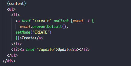 setMode('UPDATE')를 입략해서 UPDATE로 이동하게 한다.