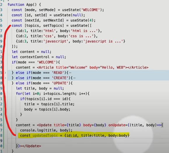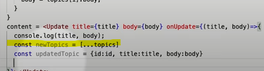 이제 title과 body의 변경된 값으로 topics 부분을 수정해 주면 된다